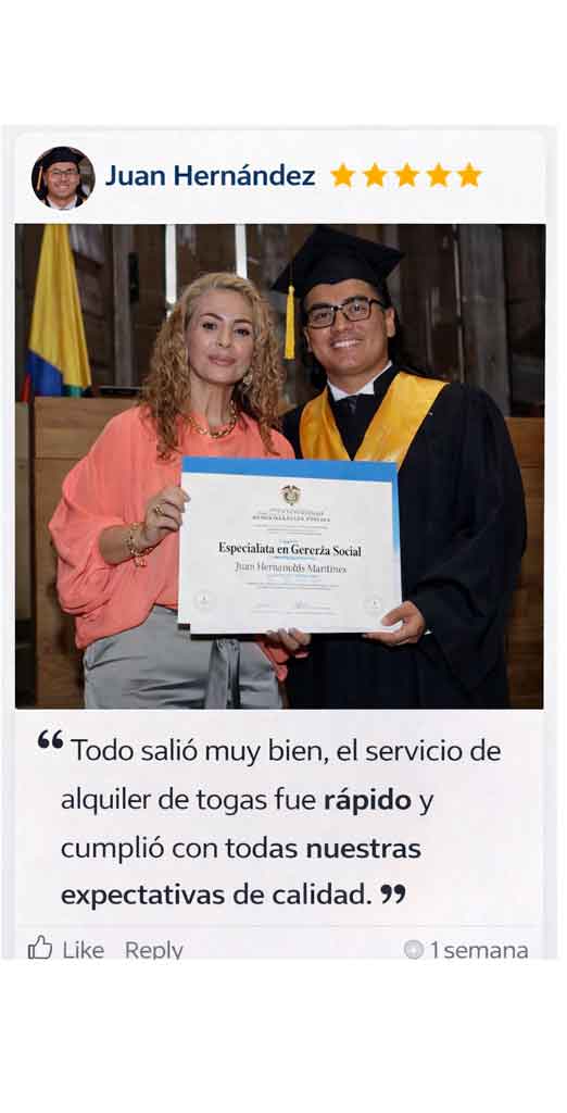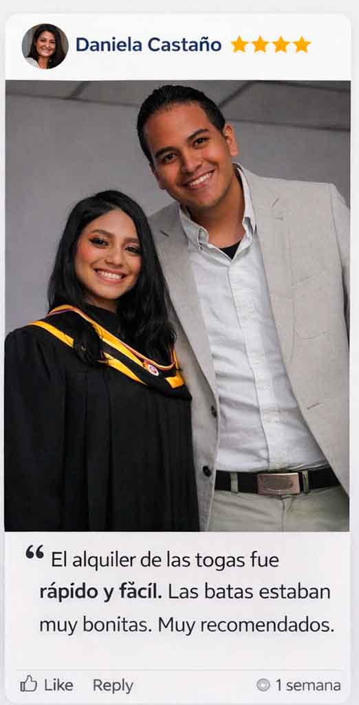 Se recomienda reservar las togas con al menos 1 o 2 semanas de anticipación, especialmente en temporada de graduaciones.